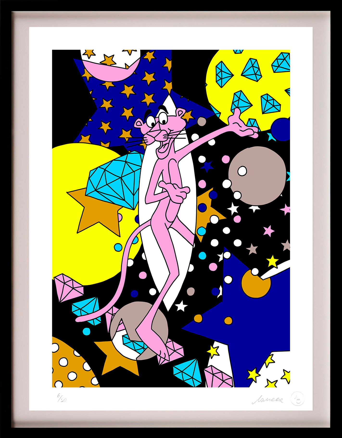 With her trademark pop of colour and little bit of pink panther star sprinkled magic, the new print series aims to lift our spirits by brightening even the gloomiest of galaxies. The patterned designs aim to play with perspective of what’s an illusion and what’s real, a common thread in Lomaka’s work.